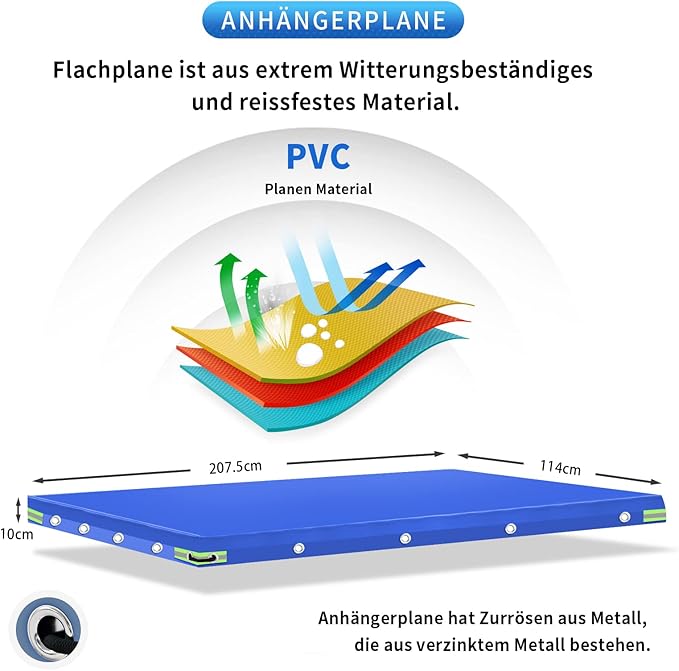 - Perfekte Passform & Strapazierfähigkeit: Die Flachplane mit den Maßen 207.5x114x10cm bietet vielseitigen Schutz. Das reißfeste Material widersteht Wind und Beanspruchung.