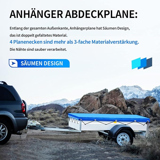 - Made für 750 kg Anhänger: Die ideale Abdeckplane für Anhänger mit typischer Ladefläche und Belastung. Robust genug für den häufigen Einsatz.