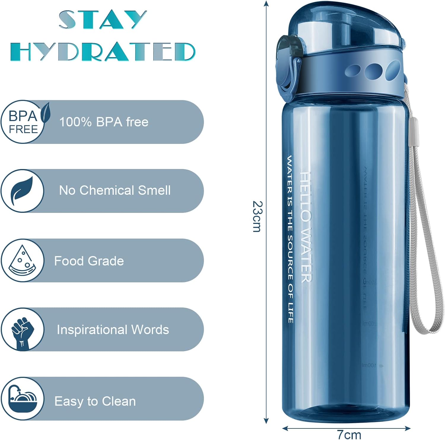 Diese Flasche vereint verantwortungsvolle Materialwahl mit cleverer Ingenieurskunst. Sie müssen nie mehr zwischen gesunder Unbedenklichkeit und praktischem Kompromiss wählen. Die zuverlässige Auslaufsicherheit schützt Ihre wertvollen Gegenstände, während die Einhand-Öffnung unterwegs echten Mehrwert bietet. Das großzügige Volumen von 780 Millilitern reduziert lästiges Nachfüllen und hilft Ihnen, Ihren täglichen Flüssigkeitsbedarf leichter zu decken. Ihr schlichtes, funktionales Design in Blau passt zu jedem Anlass – vom Business-Meeting bis zur Bergtour.