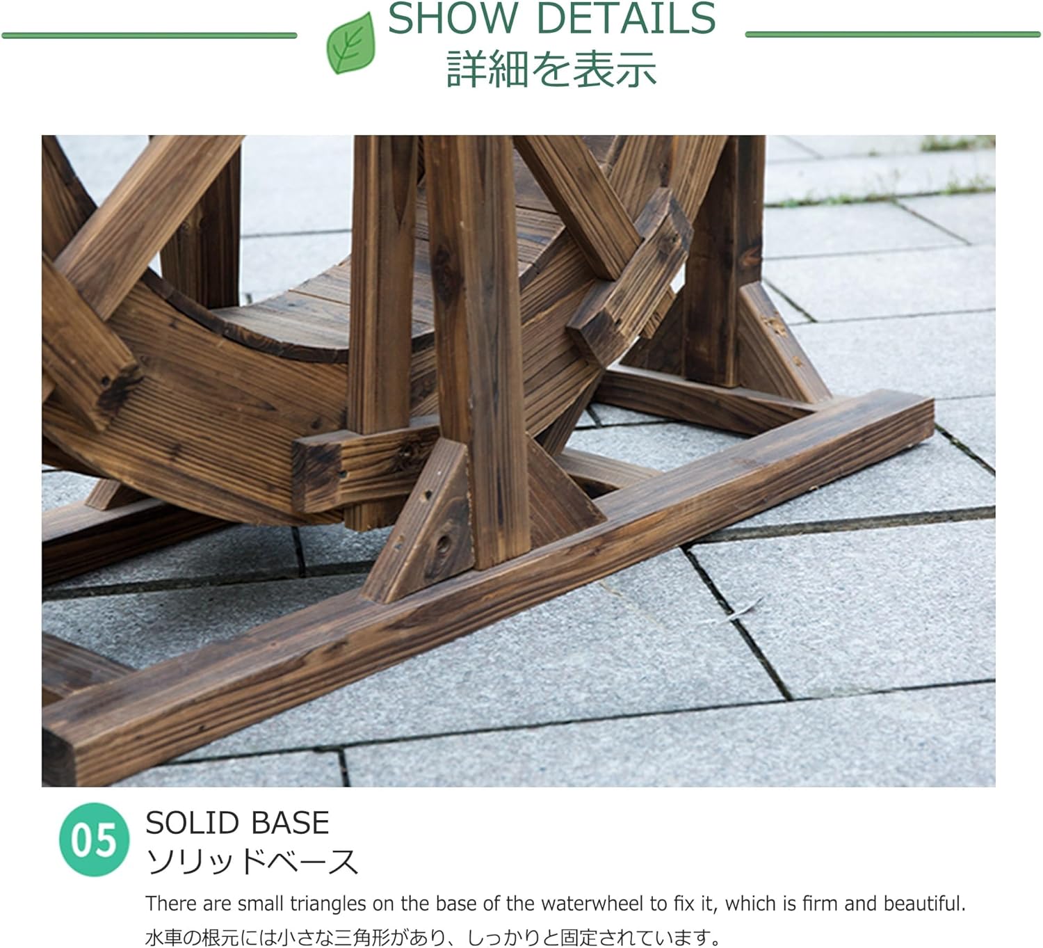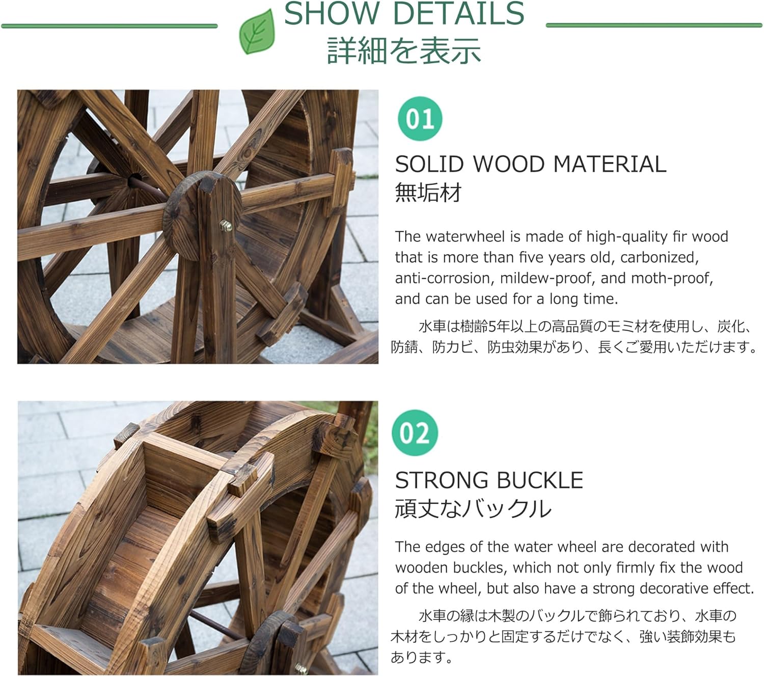 Unser Wasserrad überzeugt mit einer naturgetreuen Holzoptik, die traditionelle Mühlräder perfekt imitiert. Die wasserfesten Materialien garantieren Langlebigkeit bei allen Witterungsbedingungen, während die detailverliebte Verarbeitung für einen authentischen Look sorgt. - Einfache Installation
